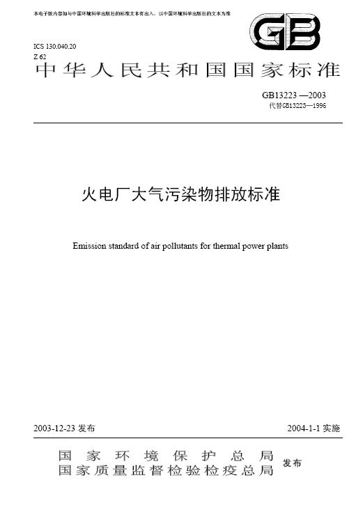 火電廠大氣污染物排放標(biāo)準(zhǔn)