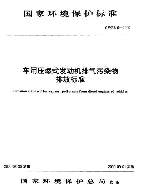 車用壓燃式發(fā)動機排氣污染物排放標準