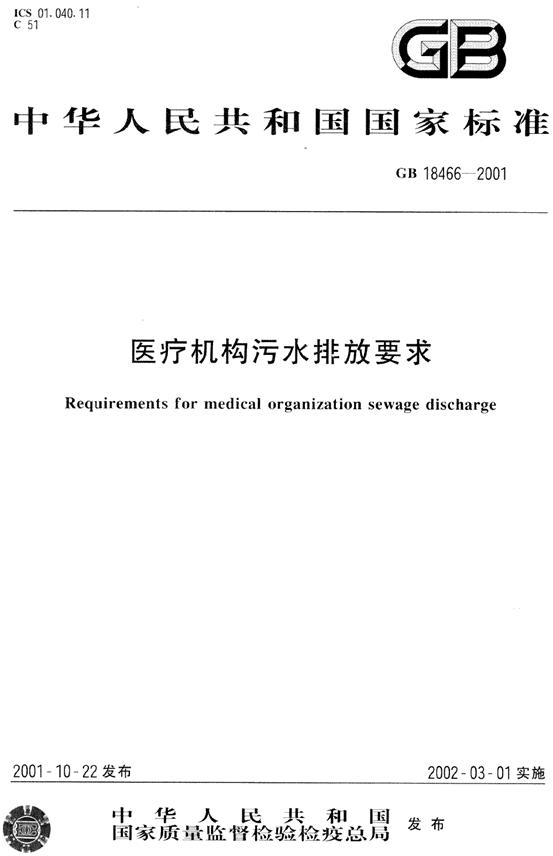 醫療機構污水排放要求GB 18466-2001