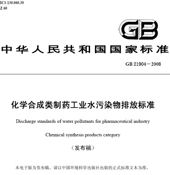 化學合成類制藥工業水污染物排放標準(GB 21904-2008)