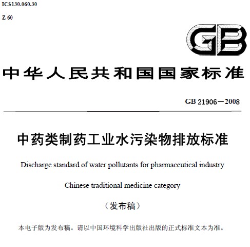 中藥類制藥工業水污染物排放標準(GB 21906-2008)