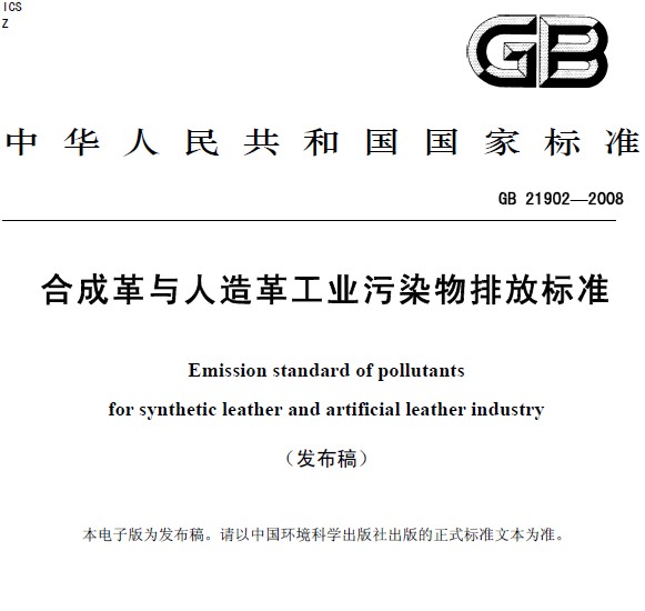 合成革與人造革工業(yè)污染物排放標(biāo)準(zhǔn)(GB 21902—2008)