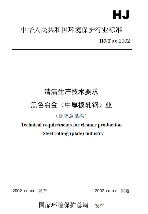 《清潔生產(chǎn)技術要求 黑色冶金(中厚板軋鋼)業(yè)》(征求意見稿)