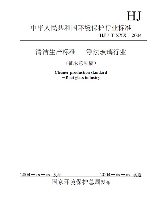 《清潔生產標準 浮法玻璃行業》(征求意見稿)