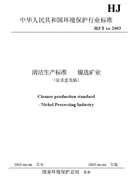 《清潔生產標準 鎳選礦業》(征求意見稿)
