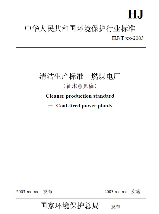 《清潔生產標準 燃煤電廠》(征求意見稿)