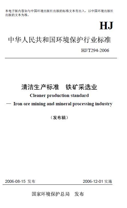 清潔生產(chǎn)標(biāo)準(zhǔn) 鐵礦采選業(yè)
